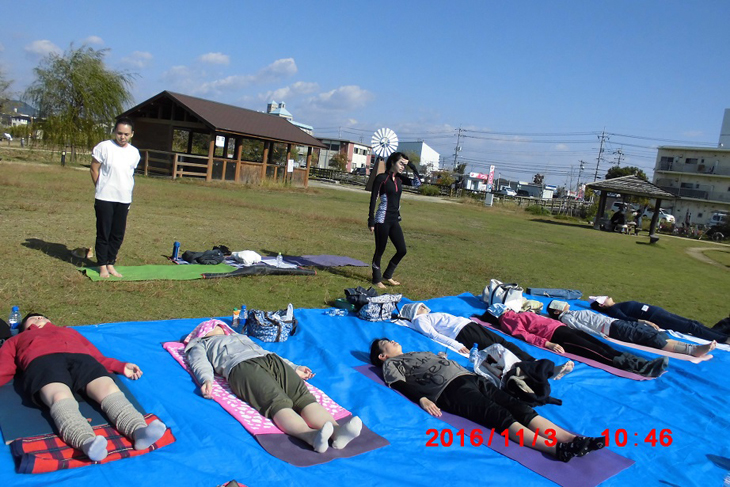 今回はじめての館外イベント「パークヨガ」
